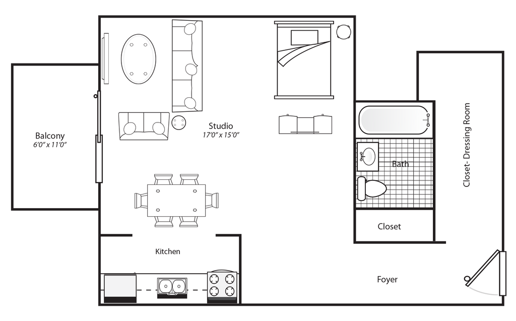 Studio, 1 Bath, 500 sq ftAvailable NowModel Gallery