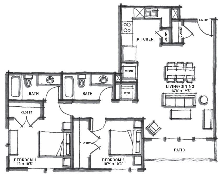 Apartment Model: a3From $2,2241 Bedroom, 1 Bath, 845 sq ftAvailable NowFloor plans are artist's rendering. All dimensions are approximate. Actual product and specifications may vary in dimension or detail. Not all features are available in every rental home. Prices and availability are subject to change. Base rent is based on monthly frequency. Additional fees may apply, such as but not limited to package delivery, trash, water, amenities, etc. Deposits vary. Please see a representative for details.