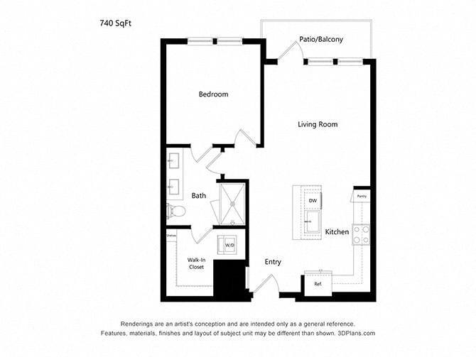 1 Bed, 1 Bath, 740 sq ftAvailable NowModel Gallery