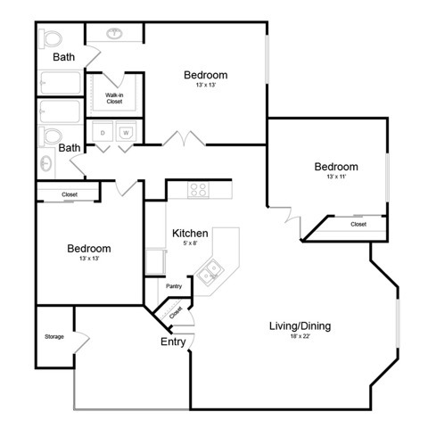 B3 - Floorplan 1 Apartment Unit: 2035Apartment Model: B3From $1,7582 Bedroom, 2 Bath, 1167 sq ftAvailable January 3, 20263 Bedrooms
