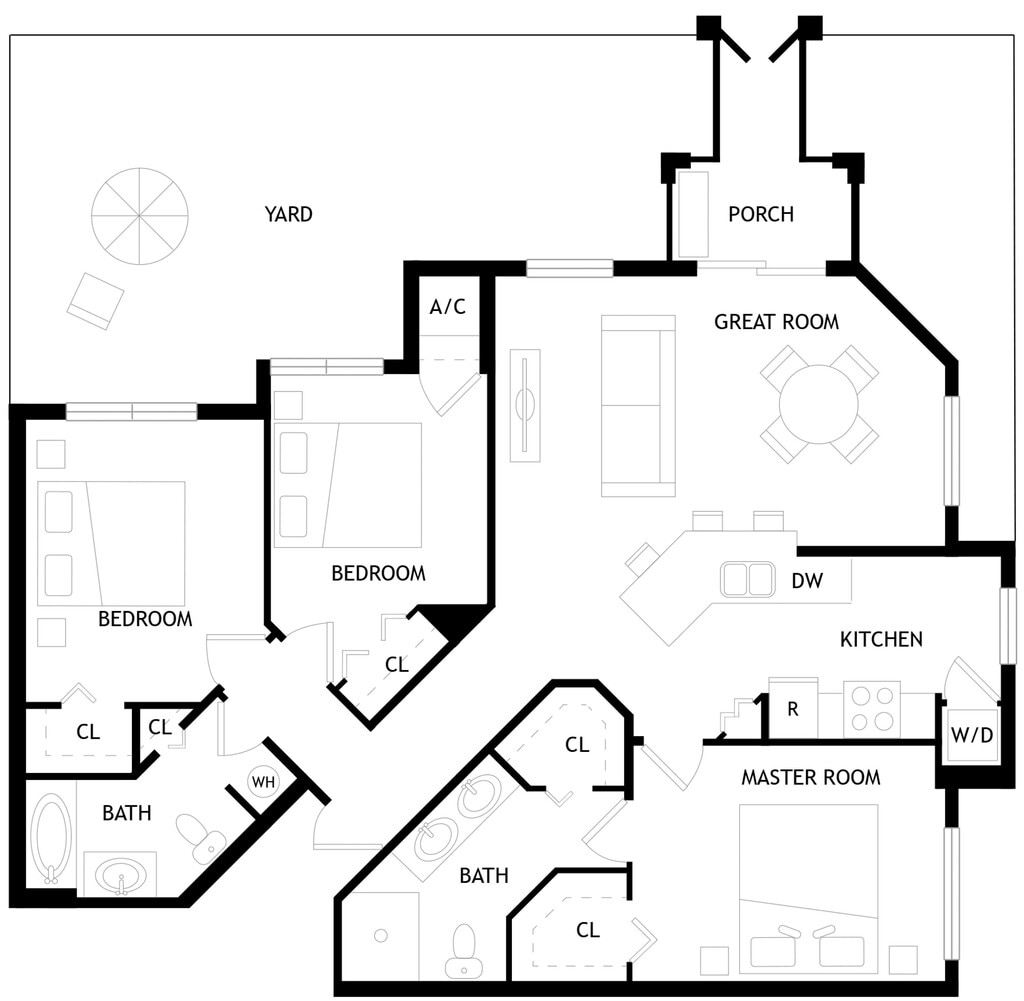 A4D - Floorplan 1 Floor plans are artist's rendering. All dimensions are approximate. Actual product and specifications may vary in dimension or detail. Not all features are available in every rental home. Prices and availability are subject to change. Base rent is based on monthly frequency. Additional fees may apply, such as but not limited to package delivery, trash, water, amenities, etc. Deposits vary. Please see a representative for details.