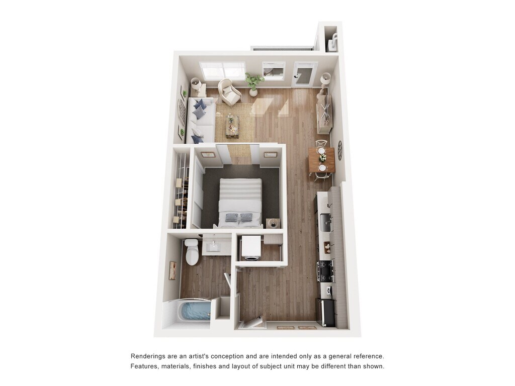 Studio, 1 Bath, 638-643 sq ftPlus FeesAvailable NowModel Gallery