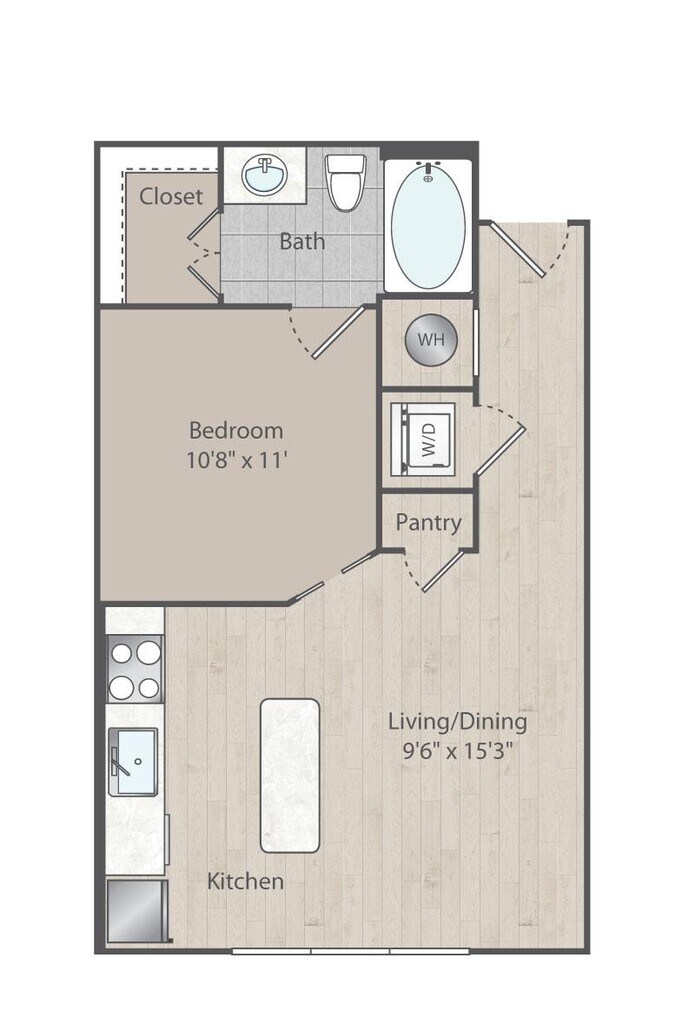 Studio, 1 Bath, 576 sq ftAvailable NowModel Gallery