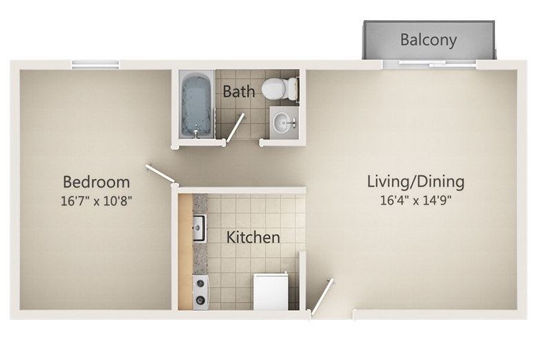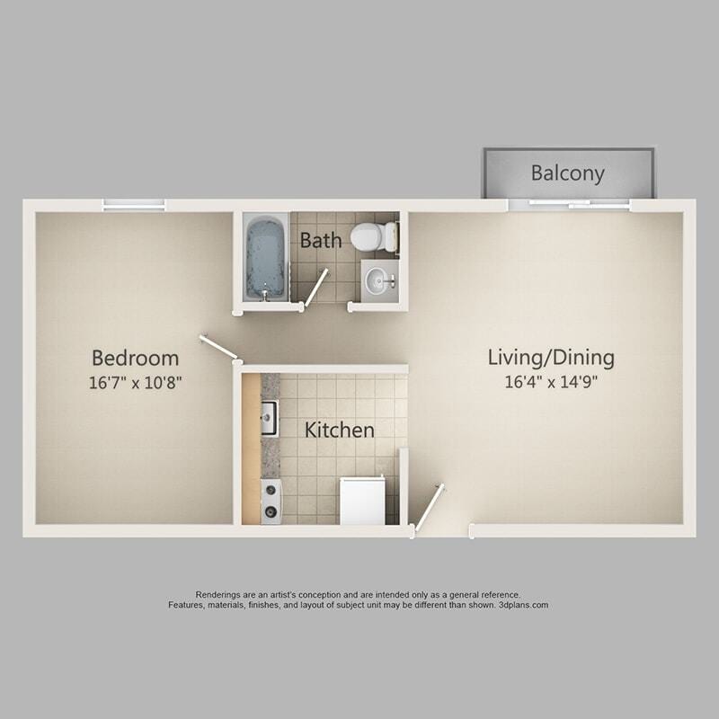 Apartment Model: A1 Renovated Call For Rates1 Bedroom, 1 Bath, 345 sq ftUnavailable![]()