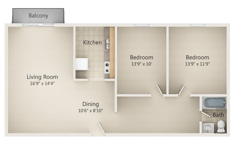 2 Beds, 1 Bath, 675 sq ftAvailable Dec 31Model Gallery