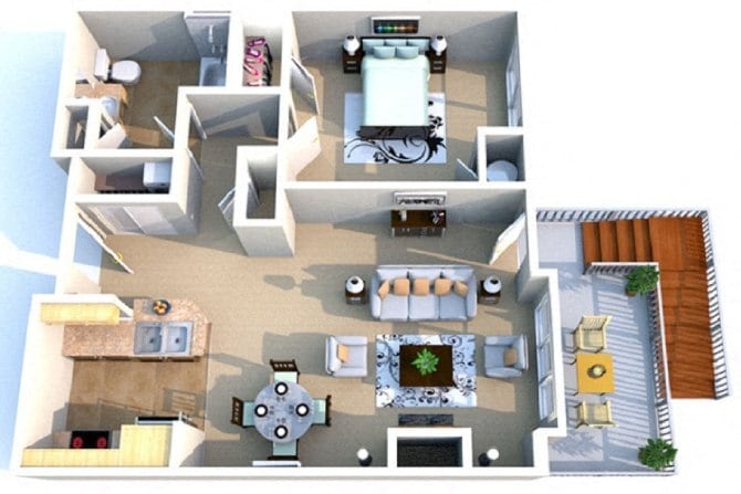 1-Bedroom (1- or 2-Bath) Apartment - Floorplan 2 2 Bedrooms