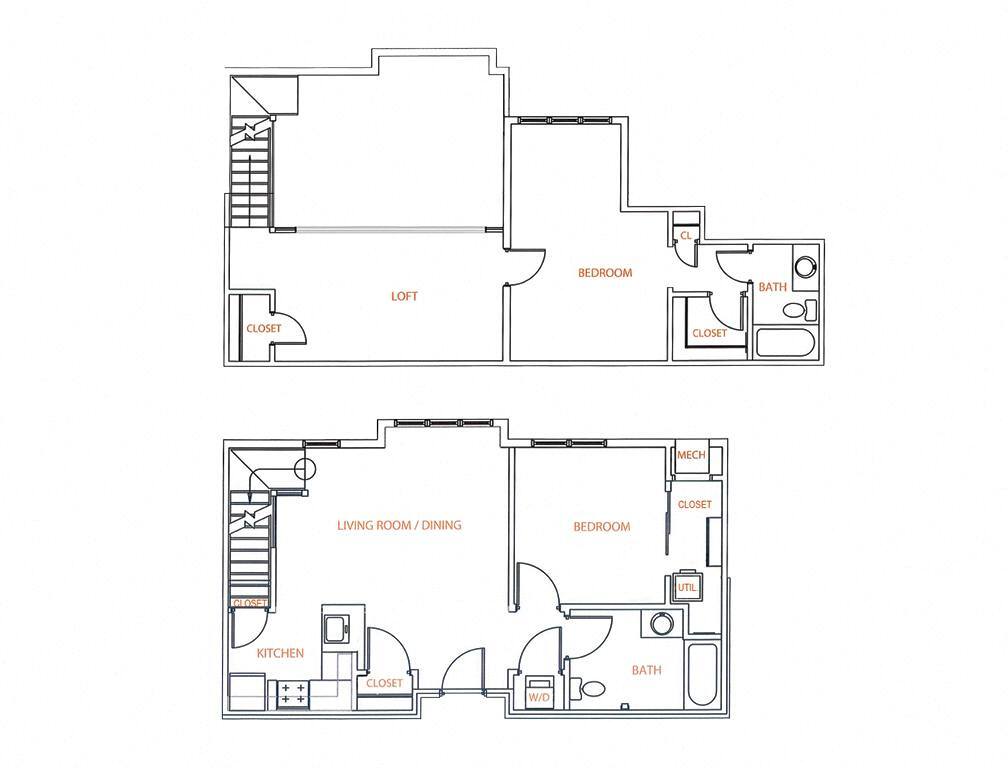 Show Unavailable Floorplans1-Bedroom (1- or 1.5-Bath) 2-Story Loft