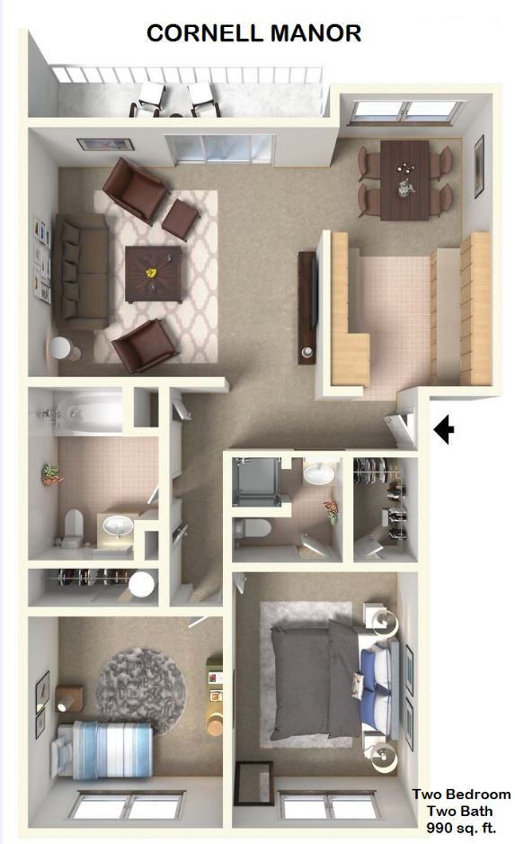 Cornell Manor offers 1 to 2 Bedroom apartments starting from $1,400 and having 740–990 sq ft. Here is the current pricing and availability: