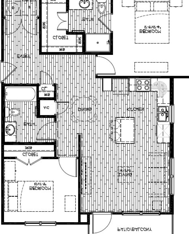 2 Beds, 2 baths - Floorplan 1 3 Bedrooms