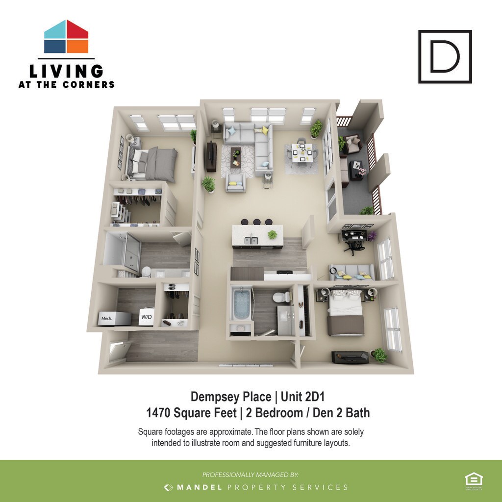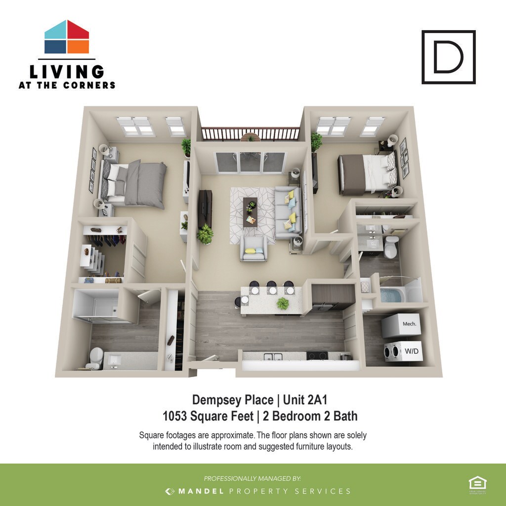 - Comfortable Mix of Hard Surface Flooring and Carpeting