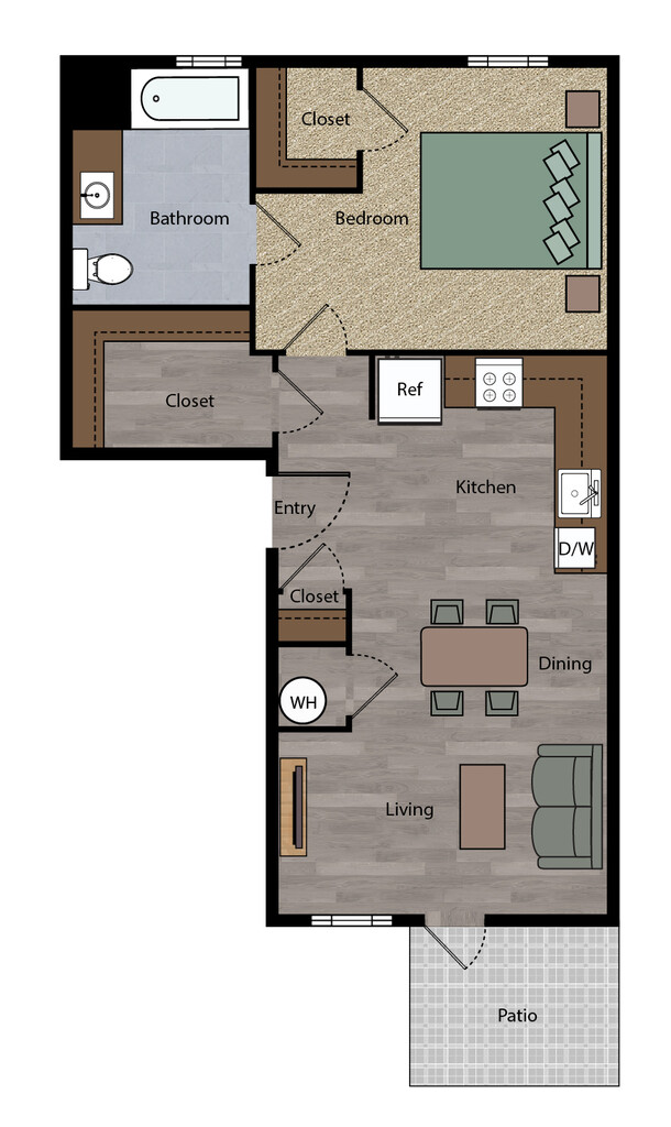 1 Bed, 1 Bath, 583 sq ftModel Gallery