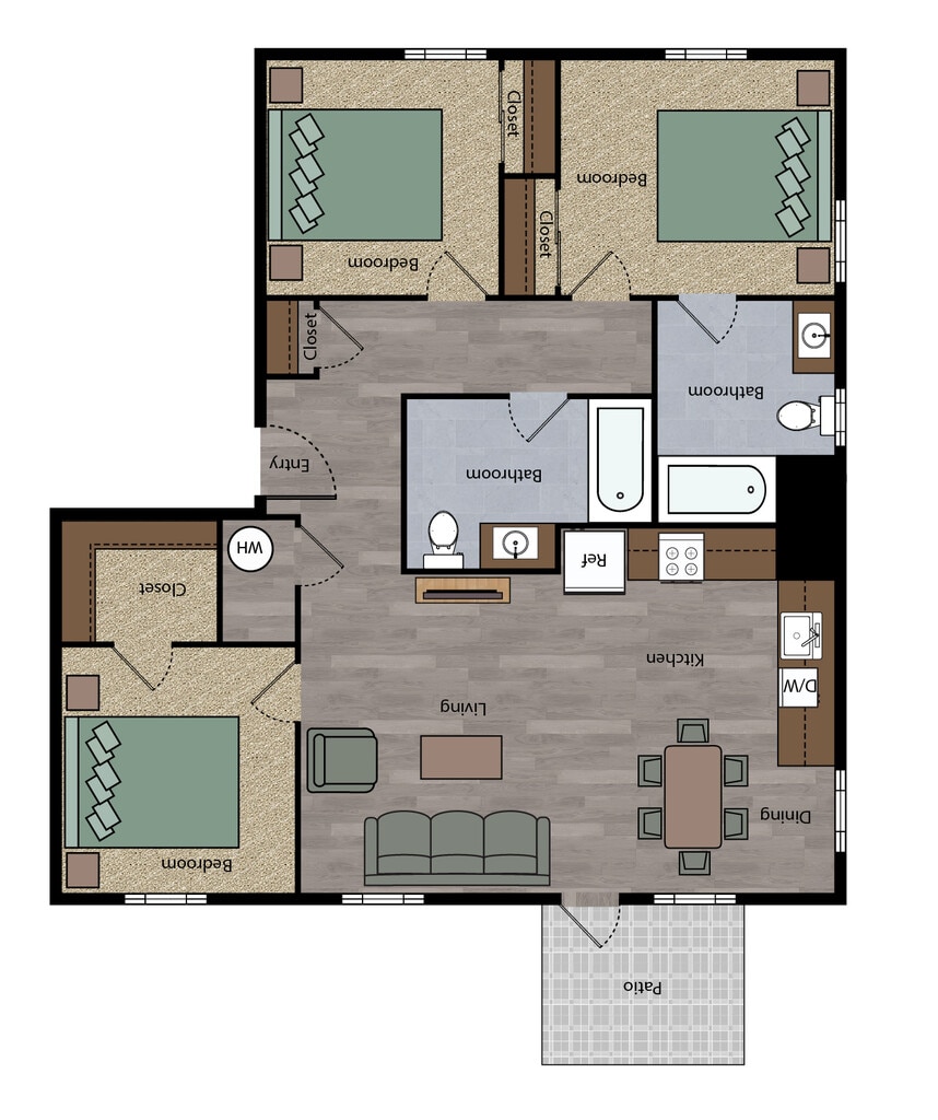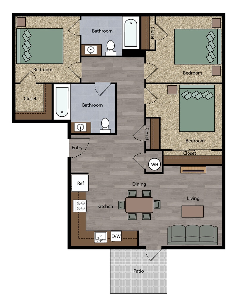 3 Beds, 2 Baths, 922-973 sq ftModel Gallery