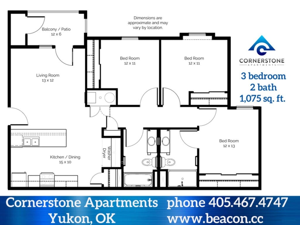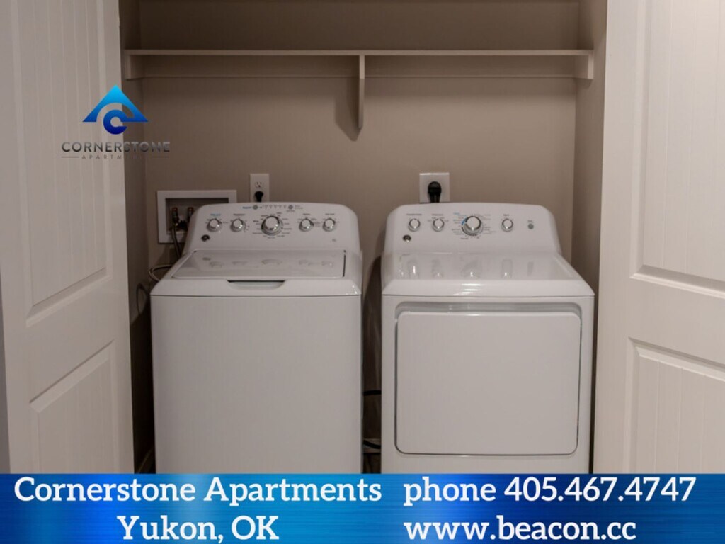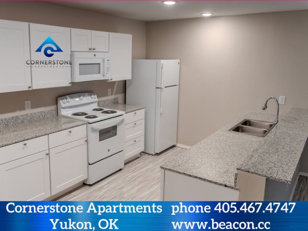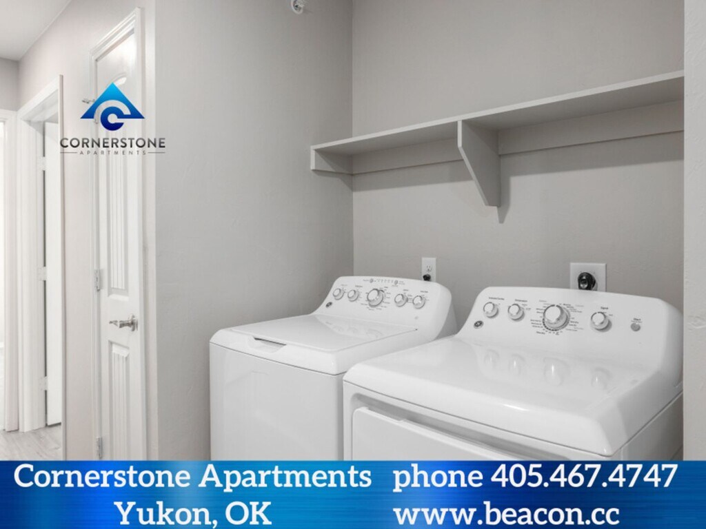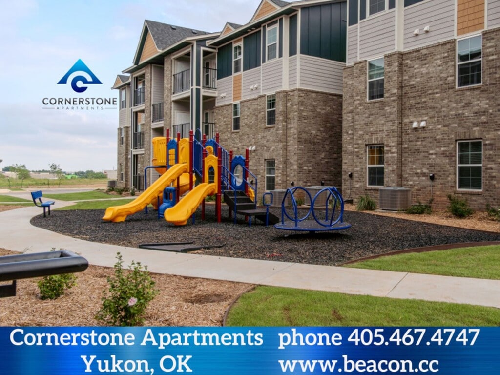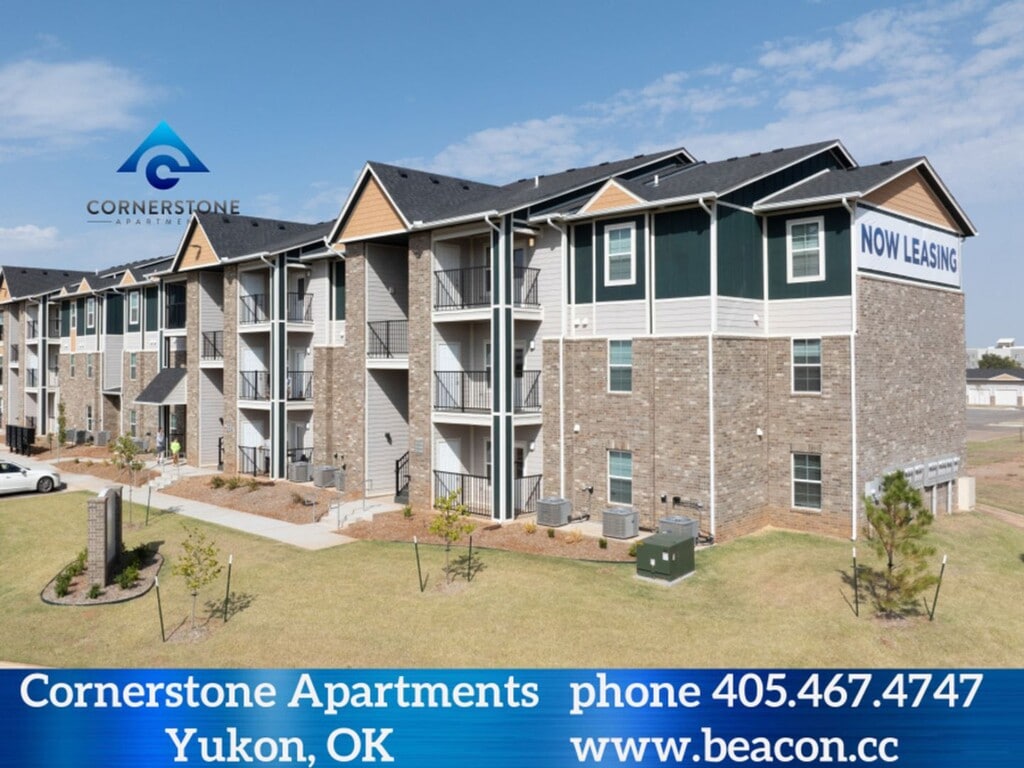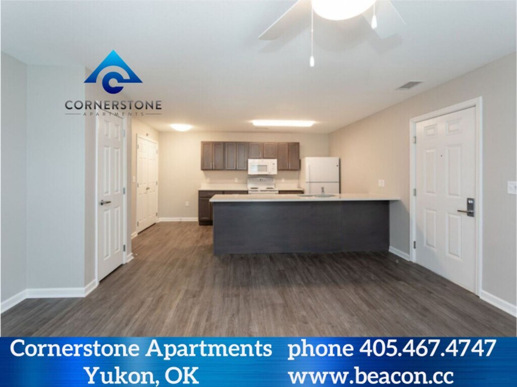 Cornerstone offers affordable one-, two- and three-bedroom apartments in the Oklahoma City Area near Yukon. These apartments are brand new. Community features include garages, community clubhouse, playground, storm shelter and on-site management. Apartment features include a full-size washer/dryer, full appliance packages, extra storage on your patio or balcony, individual heating & cooling and hot water. Applications are available online at (3W’) beacon.cc/cornerstone-yukon.html Cornerstone Apartments are located at 515 North Czech Hall Road in Yukon, OK (right behind crest foods shopping center). We are now accepting applications. We are open! Please call to schedule a showing.