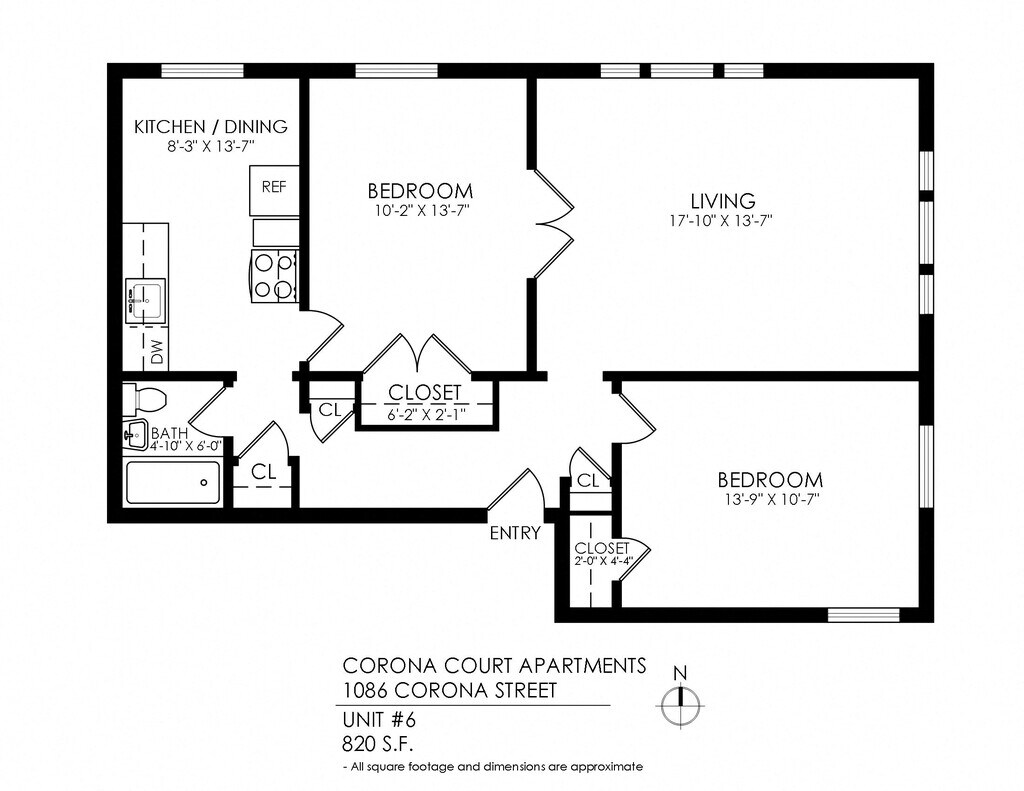2 Bed x 1 Bath - Floorplan 2 ![]()
