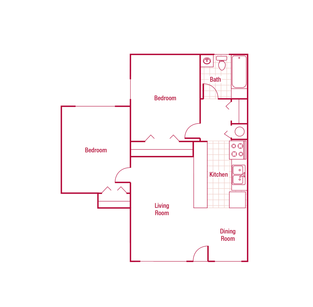 2 Beds, 1 Bath, 732 sq ftAvailable NowModel Gallery