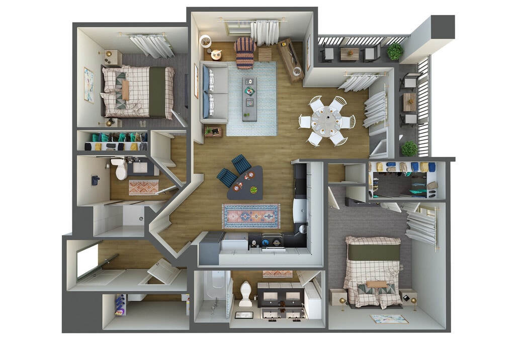 - 2 Bedrooms- Floorplan B1- From $1,9122 Beds, 2 Baths, 1056 sq ftAvailable Now- Model Gallery- Floorplans- Availability Details- Price - Availability Date - Unit - Sq Ft - $1,912 - Available Now - F204 - 1056 - $1,912 - Available Now - F207 - 1056 - $1,912 - Available Now - N306 - 1056 - Model Amenities and Features- Features- Air Conditioning