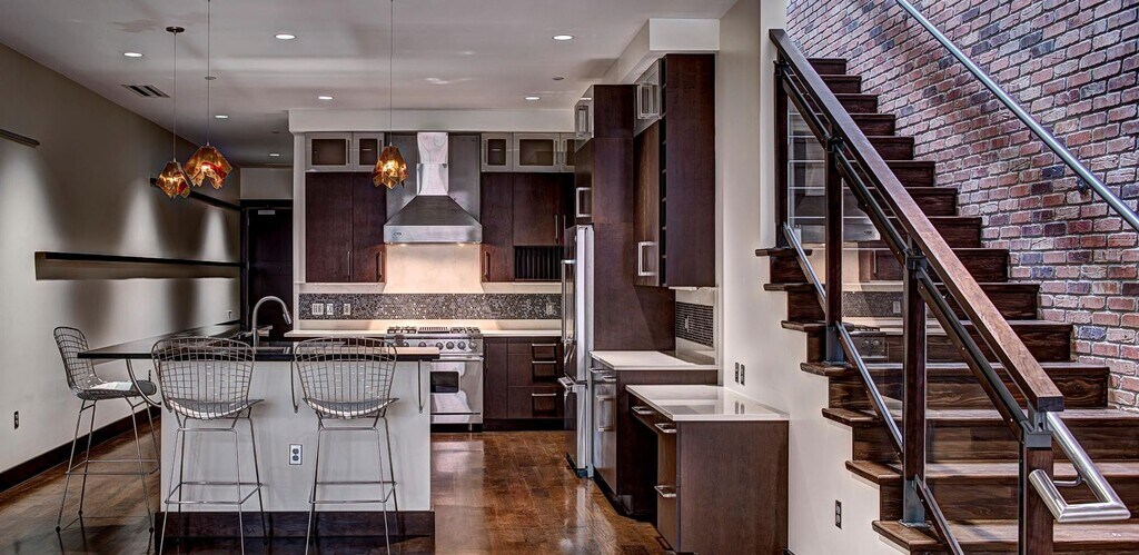 Corporation Hall features radiant heating and cooling provided by a geo-thermal heat pump system and therefore, tenants don't ever see a bill for heating or cooling. LED lighting has been prescribed throughout. We have solar thermal panels on the roof which provide pre-heating for our domestic hot water, thus reducing energy use. The building has been designed to be a secure building, so access control is built in. Each tenant has access to two storage units within the building; the larger in the basement and a smaller unit on the second floor, for convenience (for bikes, strollers, etc.) Each unit comes with its own garage and one parking space. You will enjoy high quality Viking appliances and beautiful granite and tile finishes in the kitchen and baths.