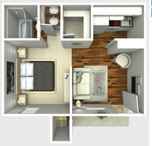 Apartment Unit: 4310Apartment Model: E2-STUDIOX1$6191 Bedroom, 1 Bath, 475 sq ftAvailable February 21, 2026E1-STUDIOX1