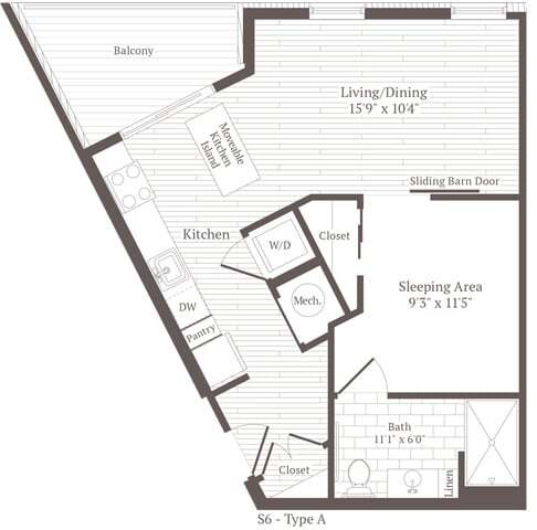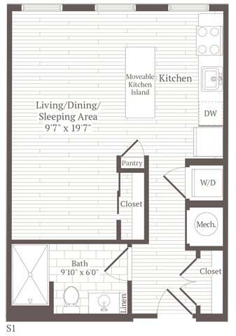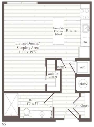Studio w-nook - Floorplan 1 Apartment Unit: 360Apartment Model: Studio w-nook$2,489Studio, 1 Bath, 561 sq ftAvailable NowStudio