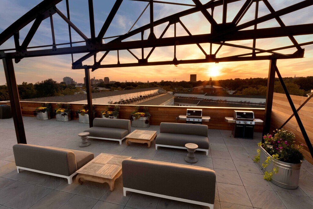 Situated on upper State Street in New Haven, Corsair offers thoughtful, modern comfort in a historic refurbished fighter plane warehouse. Throughout the community, original materials like pine beams and steel tresses have been preserved to give the building soul. Live in East Rock with easy access to leafy streets, local hangouts, famed restaurants and sprawling park space. Hang out on our roof deck, go for a dip in the heated courtyard pool or create your own workout with Peloton Cycle? in our fully equipped fitness center with upcycled gymnasium flooring. Extraordinary is made at Corsair.