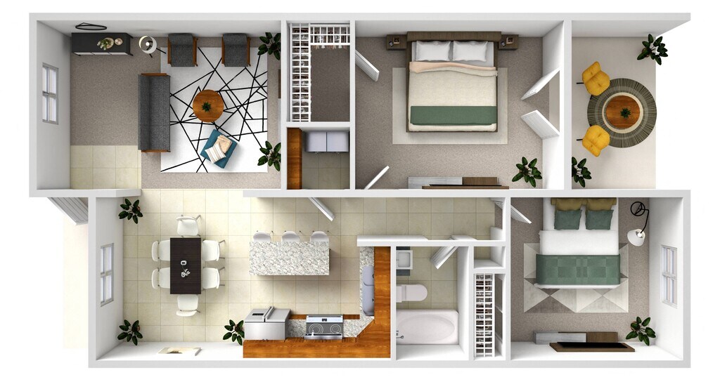 Apartment Model: 2 Bed - 1 Bath2 Bedroom, 1 Bath, 915 sq ftAvailable Now![]()