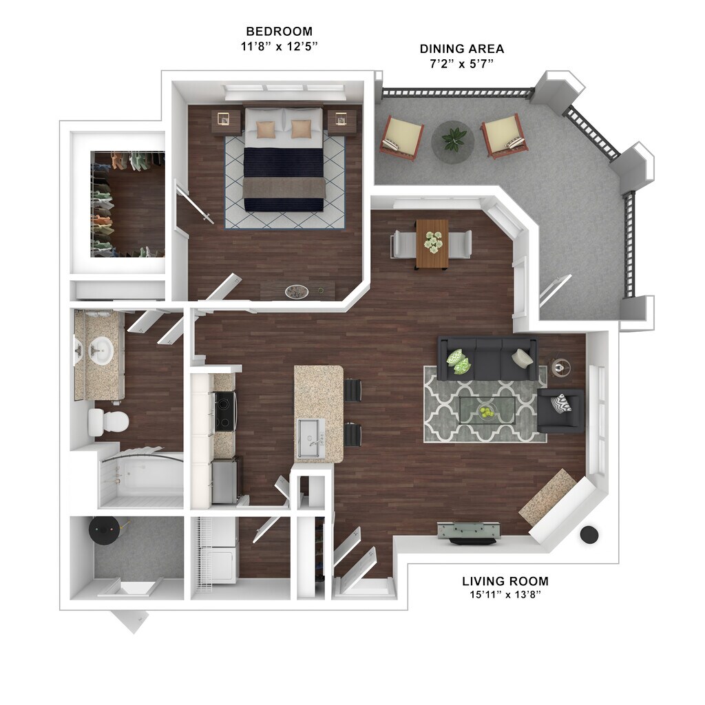 1 Bed, 1 Bath, 707 sq ftAvailable NowModel Gallery