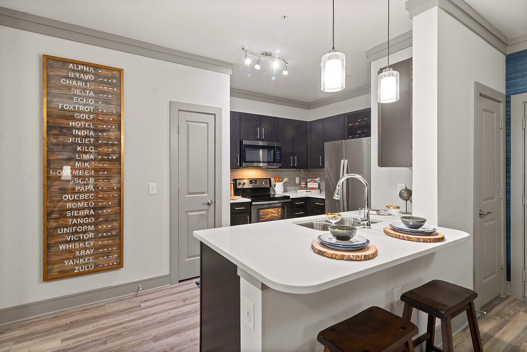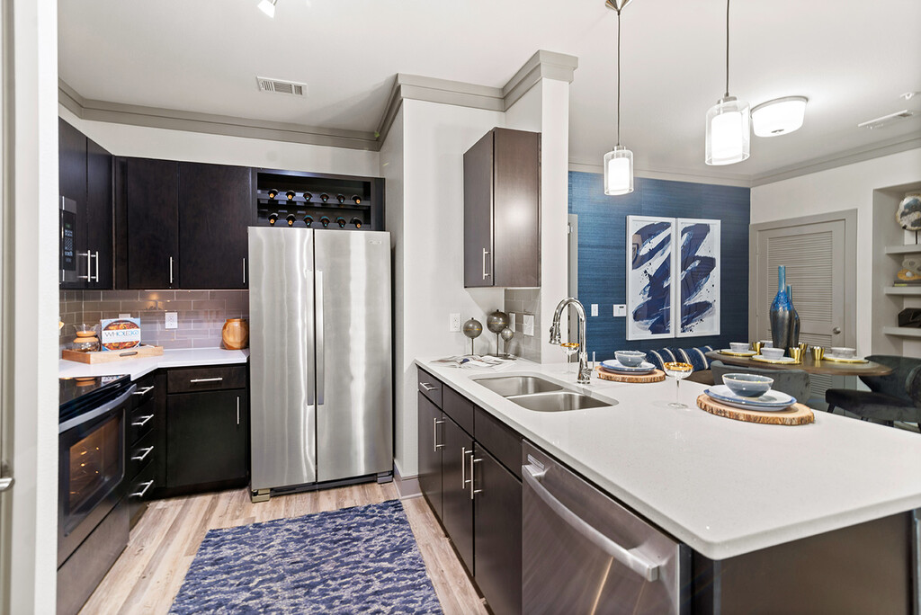 Located in the top-rated Frisco ISD, our Frisco apartment community offers a world of opportunity, close to home. Upscale features like sleek quartz countertops, wood-style flooring, and modern lighting will make you proud to call any of our one, two, or three-bedroom apartments for rent in Frisco, TX home. Convenience to major employers like Toyota, Fed Ex, and Chase makes your everyday commute a breeze. And when you’re considering your weekend plans, you have plenty of options nearby. Break a sweat in one of our two 24/7 fitness centers, lounge by our resort-style pools, or treat yourself to a shopping spree at The Shops at Legacy and Legacy West. No matter what your day looks like, you’ll come home to the hospitality and service of a team dedicated to you.