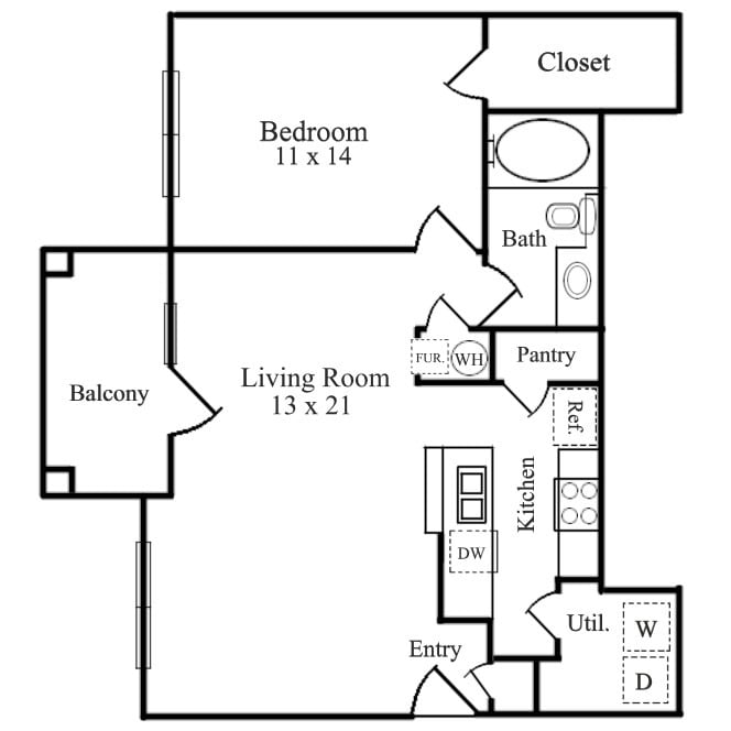 1 Bed, 1 Bath, 712 sq ftAvailable NowModel Gallery