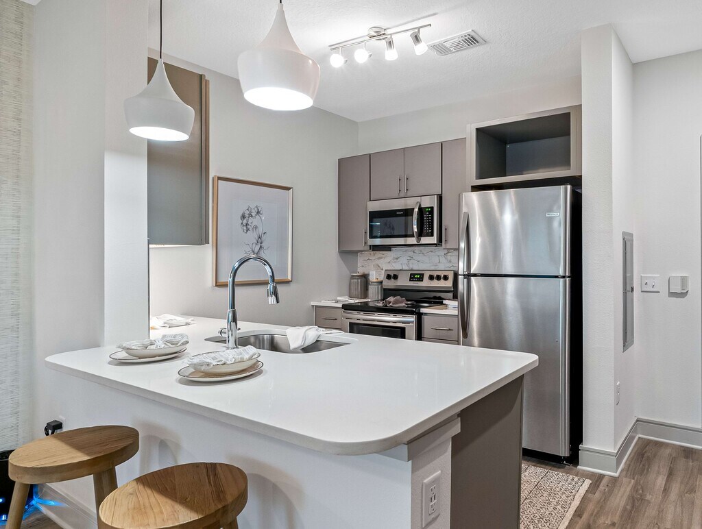 Located minutes away from Downtown St. Petersburg and a world of options for shopping, dining, and entertainment, our luxury apartments near St. Pete offer upscale living in Pinellas Park, FL. Designer features like quartz countertops and custom cabinetry will make you proud to call any of our one, two, and three-bedroom apartments near Gandy Blvd. home. Convenience to I-275 and major employers like St. Petersburg College and Tampa International Airport makes your everyday commute a breeze. When you’re considering your weekend (or weeknight) plans, you have plenty of options nearby. Go for a stroll surrounded by nature at Sawgrass Lake Park, treat yourself to some shopping at The Sundial in Downtown St. Petersburg or Tyrone Square, or head out for a beach day with friends just minutes away at St. Pete Beach. No matter what your day looks like, you’ll come home to the hospitality and service of a community team dedicated to you. What We Offer Cortland Satori is located at 3110 Grand Ave., Pinellas Park, FL 33782. Enjoy a resort-style pool, a two-story, 24/7 fitness center with a yoga studio, a movie theater, and a sports lounge. Our gated apartments near the Gandy Bridge also feature wood-style flooring, stainless steel appliances, and in-home washer and dryer sets. Choose from a variety of floor plans, including one, two, and three-bedroom apartment homes, each designed with luxury lifestyles in mind. At Cortland, award-winning customer service is more than a promise – it's our passion. Our apartments in Pinellas Park, FL prioritize each resident, ensuring that hospitality here is more than just a standard – it’s what we do best. With attention to every detail and a commitment to providing next-level apartment living, we make it clear that our residents are our number one priority. Every moment you spend with us is an opportunity to show how much you matter. At Cortland Satori, we believe in creating a vibrant community. Join us for resident events, social gatherings, and community activities that make living here a unique experience. We also welcome your furry friends! Our pet-friendly apartment community features a bark park and a dog grooming spa. Ready to see your new Cortland apartment home? Schedule a tour today!