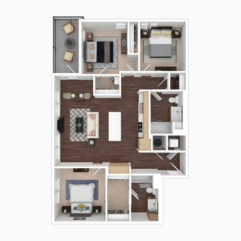 Apartment Model: A3 - Southfork1 Bedroom, 1 Bath, 796 sq ftAvailable January 8, 2026![]()
