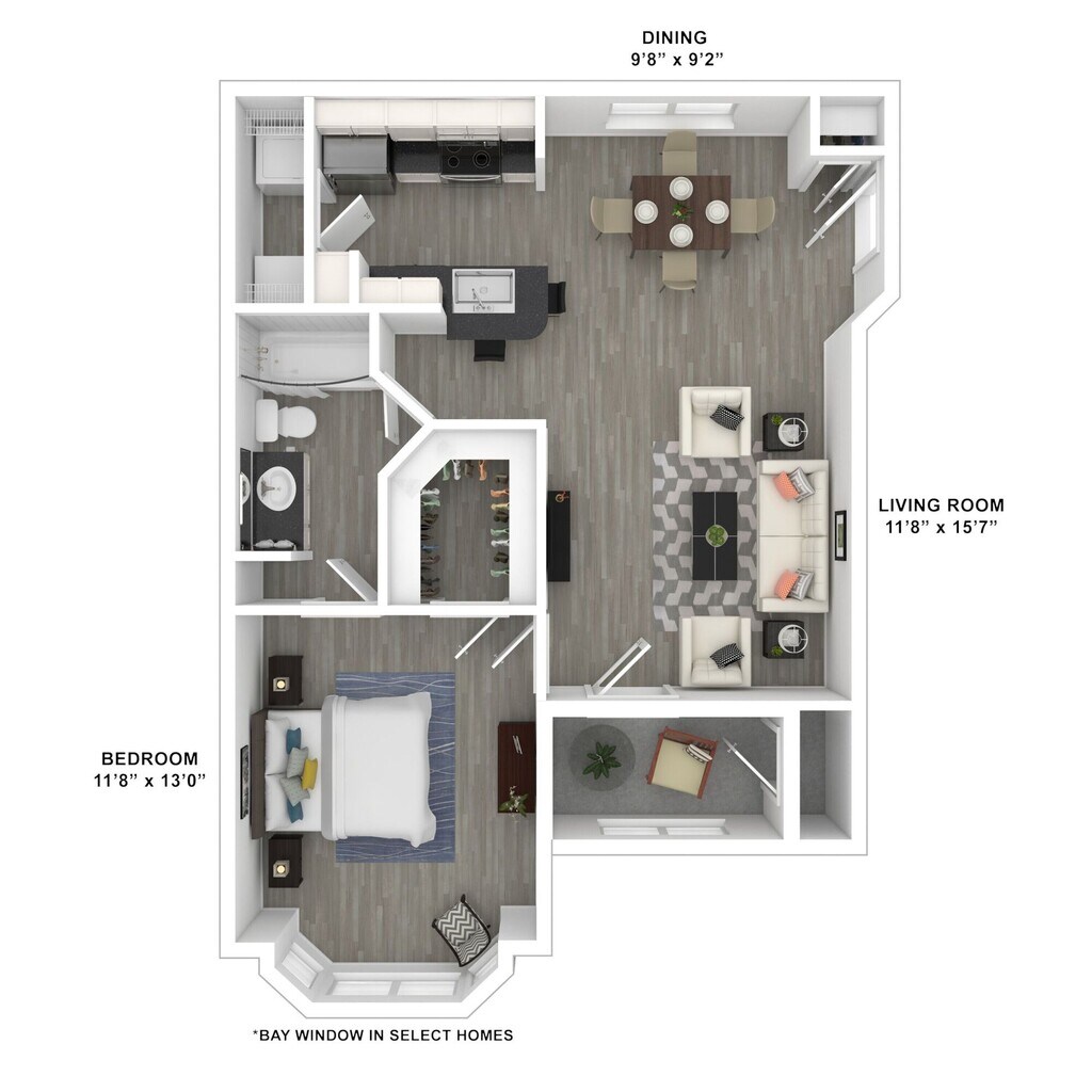 1 Bed, 1 Bath, 718-737 sq ftAvailable NowModel Gallery