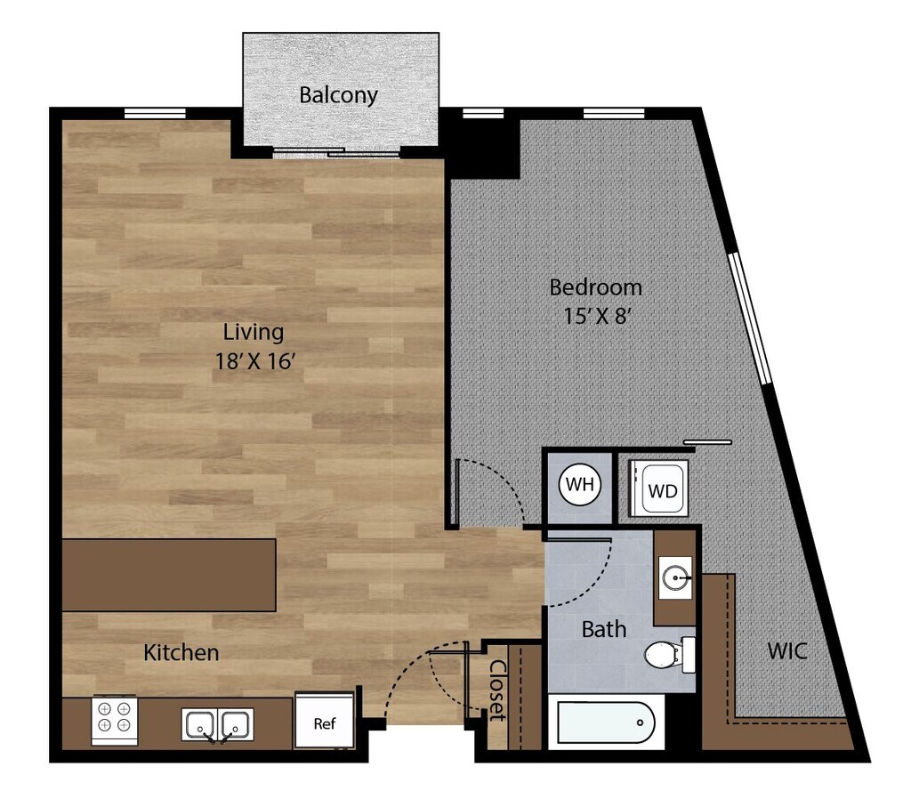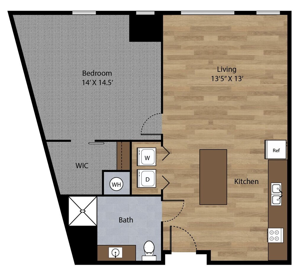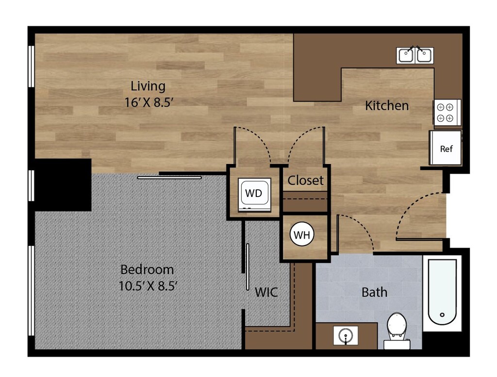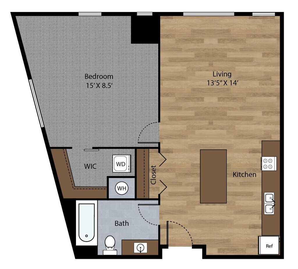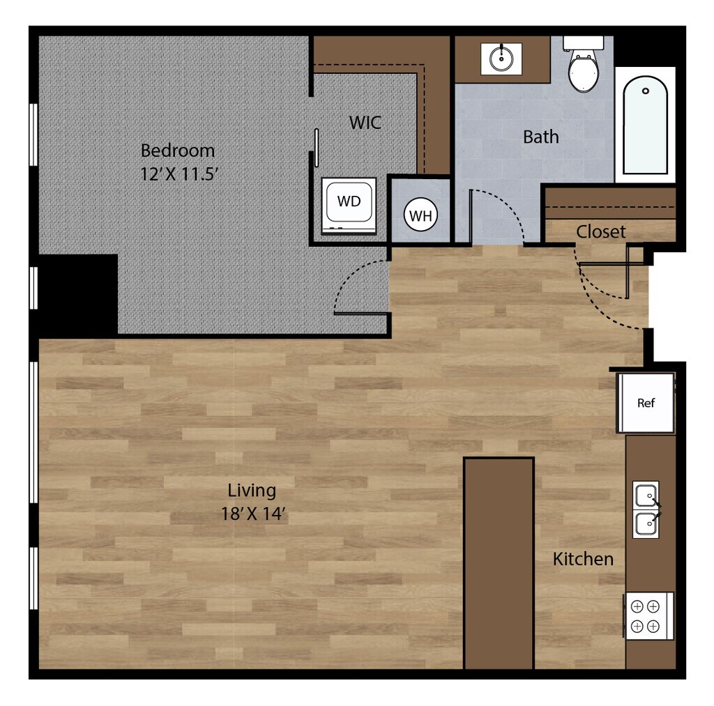 Studio, 1 Bath, 490-540 sq ftAvailable NowModel Gallery