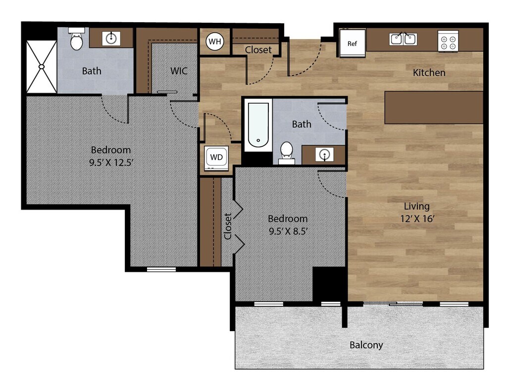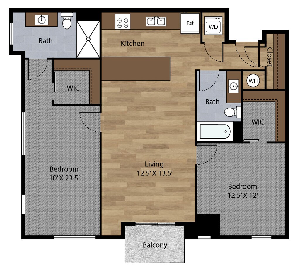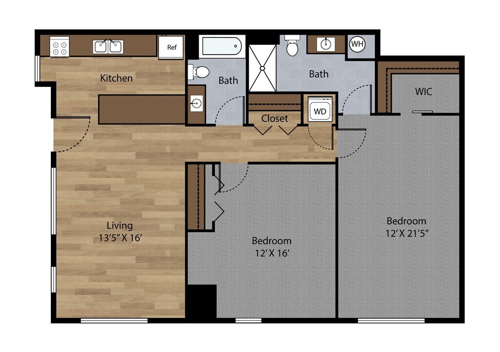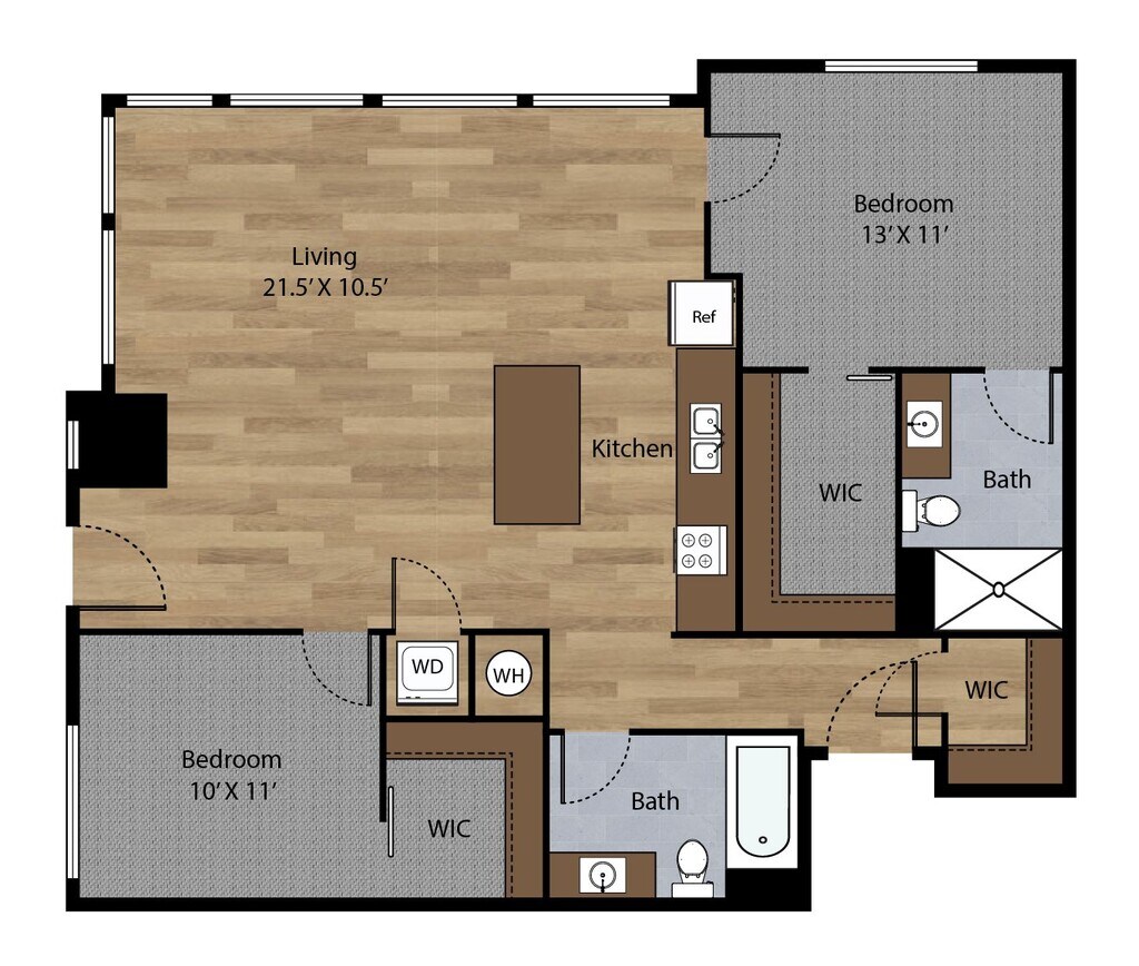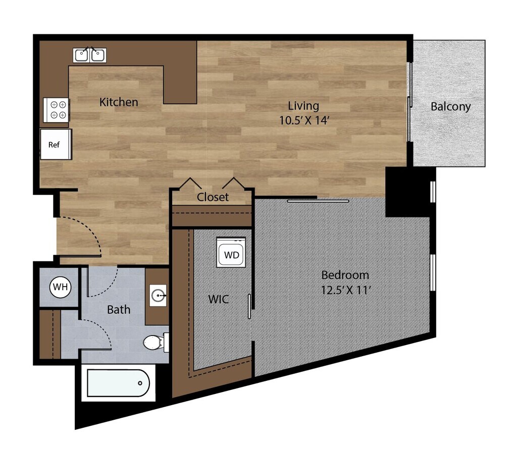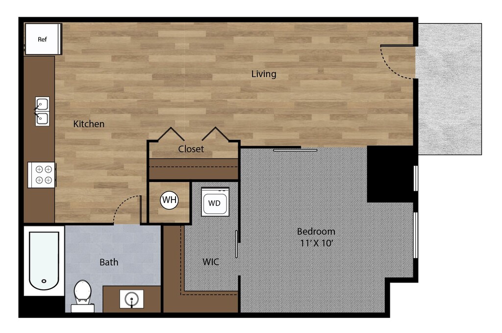 Studio, 1 Bath, 490-540 sq ftAvailable NowModel Gallery