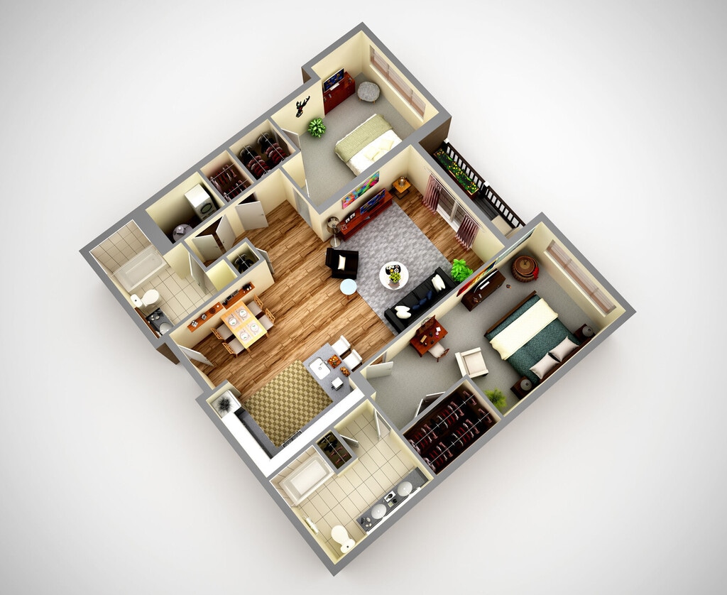 2 Beds, 2 Baths, 1060 sq ftModel Gallery