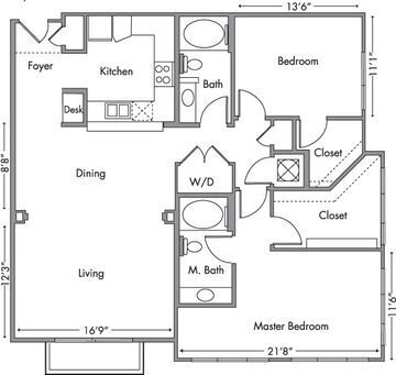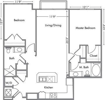 1 Bed, 1 Bath, 823-844 sq ftAvailable NowModel Gallery