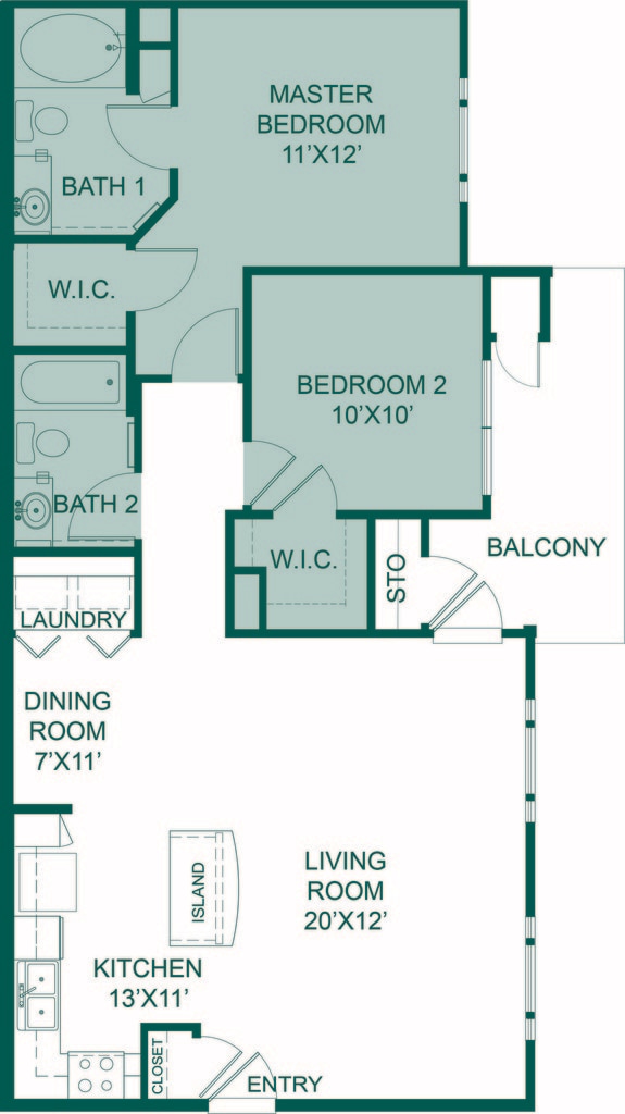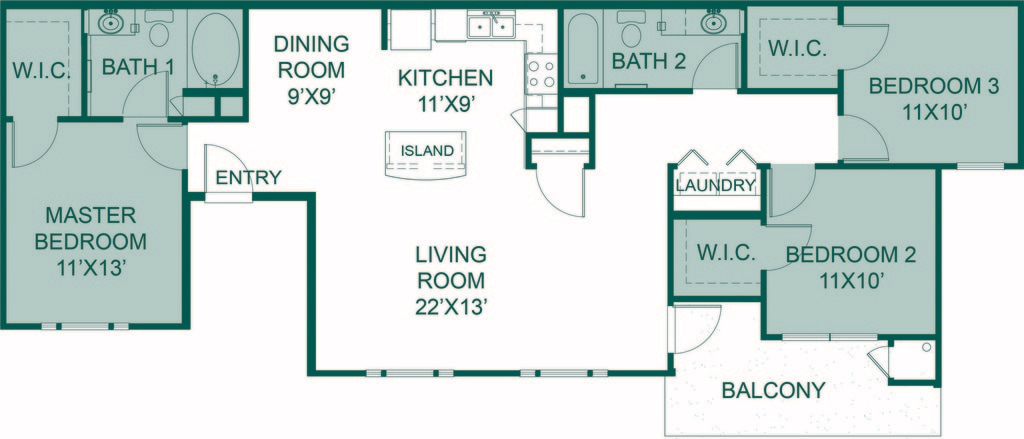 Apartment Model: 2 Bed/2 Bath B2 Bedroom, 2 Bath, 975 sq ftUnavailable2 Bed/2 Bath B - Floorplan 1 3 Bedrooms