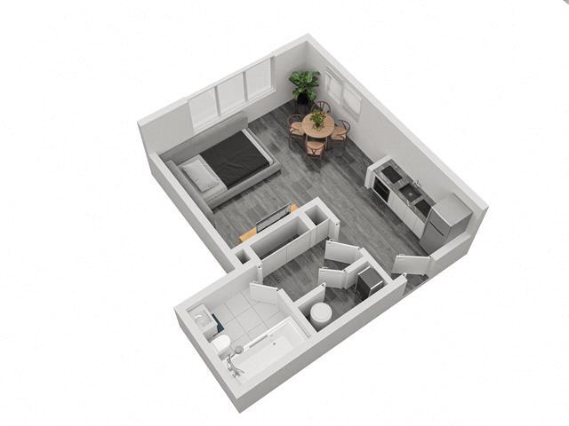 Studio, 1 Bath, 600 sq ftAvailable NowModel Gallery