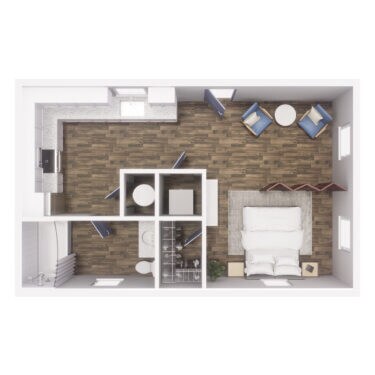 Studio, 1 Bath, 360 sq ftAvailable NowModel Gallery