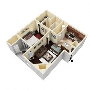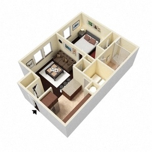 Apartment Model: A2From $9271 Bedroom, 1 Bath, 519 sq ftAvailable Now![]()
