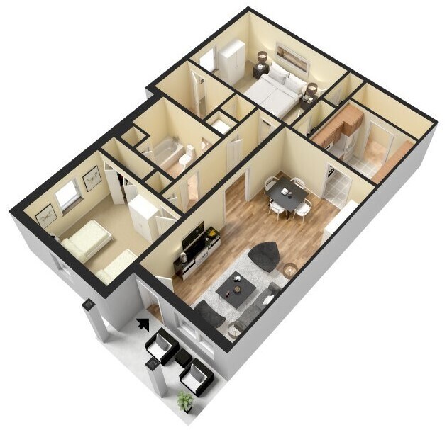 2 Beds, 2 Baths, 1021 sq ftModel Gallery