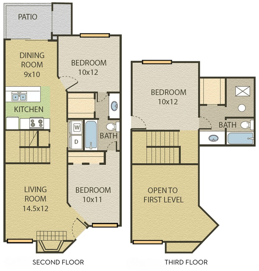 2 Beds, 2.5 Baths, 964 sq ftAvailable Dec 11Largest 2 BedroomThis is the largest 2 Bedroom at this PropertyModel Gallery