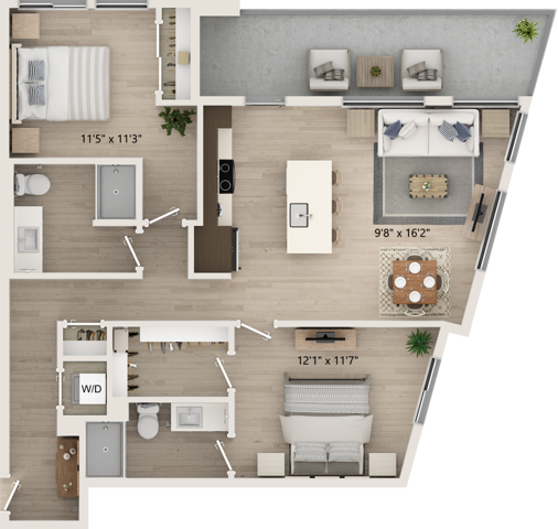 1 Bed, 1 Bath, 691 sq ftAvailable NowModel Gallery