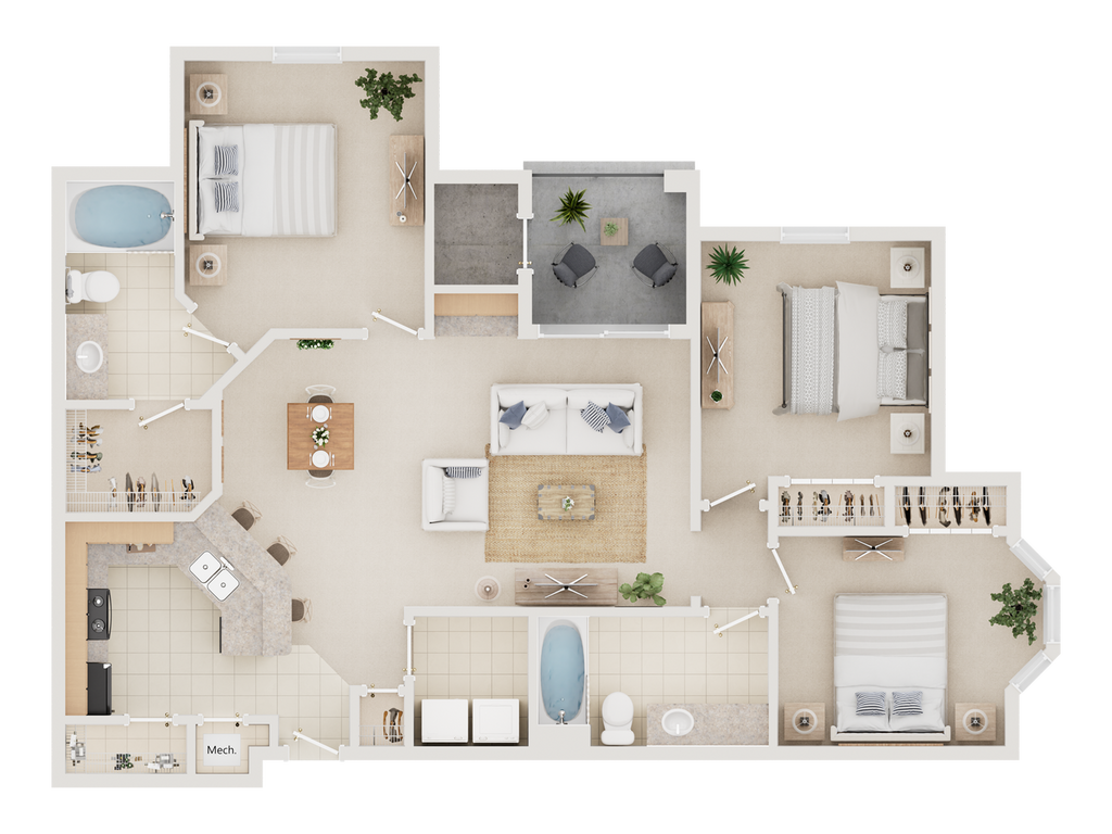 1 Bed, 1 Bath, 756 sq ftModel Gallery
