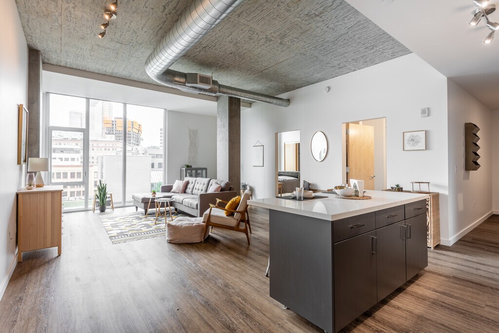 Nestled in between the Pearl and Alphabet districts in downtown Portland is the ultra-modern Couch9. Couch9 (pronounced Kooch Nine) is located just off the historic NW Couch Street and surrounded by eclectic eateries, unique shops, food trucks, fine art, entertainment, and easy-access public transit. Enjoy delicious food from Farmhouse Thai right in our building, or enjoy being just steps from the famous Powells Books, Voodoo Doughnuts, and the notorious bustling nightlife on Burnside; it is the perfect location for experiencing everything downtown has to offer. Couch9 offers studio, one, two, and three-bedroom apartments and penthouse homes in an iconic city setting. Our modern high-rise community features a stunning rooftop deck, deluxe amenities, large living spaces, and a pet-friendly atmosphere. Our apartments for rent in Pearl District, Portland, OR, are unmistakably high-class, bursting with luxurious features and upgrades. Turn your every day into an exemplary day. Contact us today to learn more.