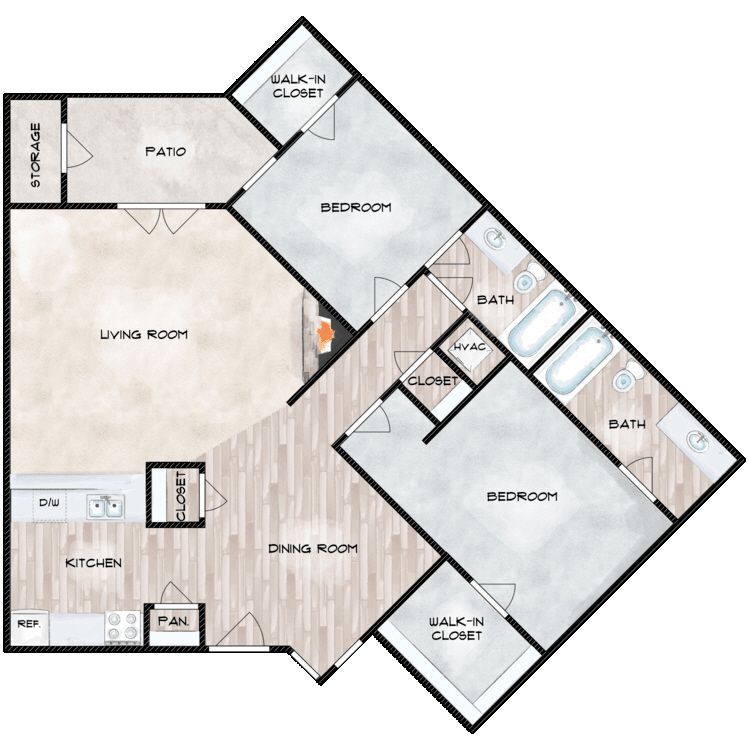 Apartment Model: 2B2B FP$9371 Bedroom, 2 Bath, 812 sq ftUnavailable![]() - 2B2B FP - Floorplan 1