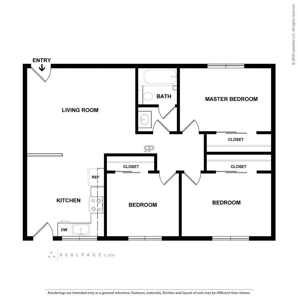 3 Beds, 1 Bath, 845 sq ftModel Gallery