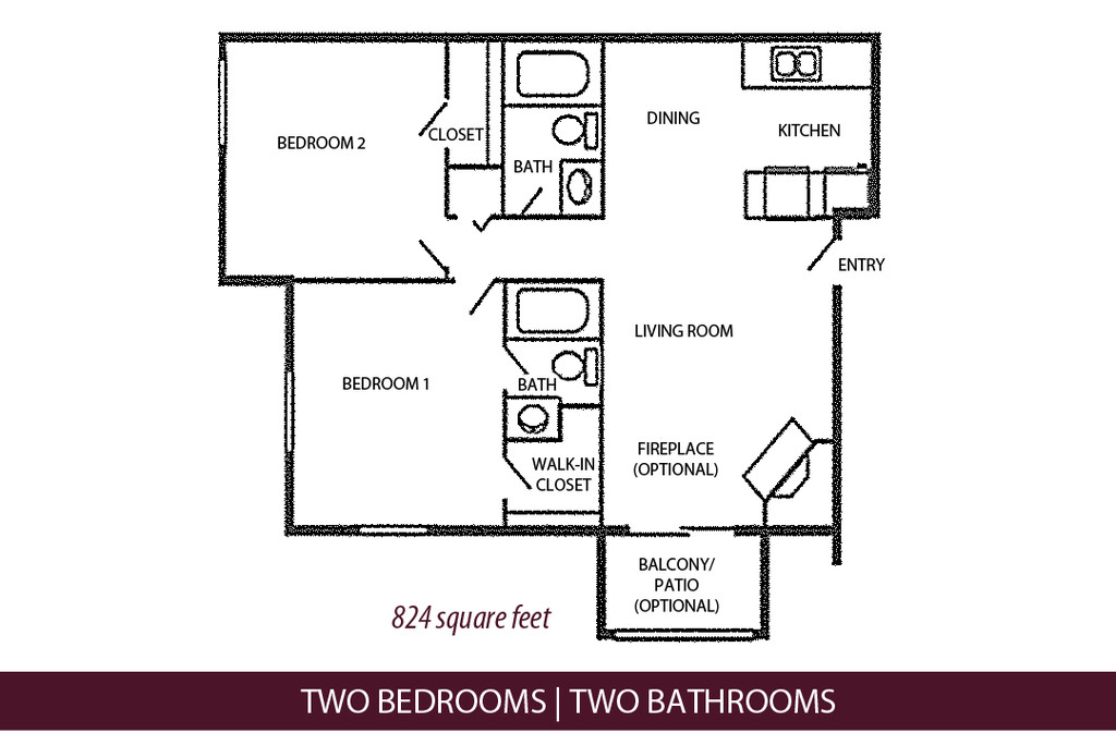 Apartment Model: 2 BED 2 BATHFrom $1,0502 Bedroom, 2 Bath, 824 sq ftAvailable Now![]()