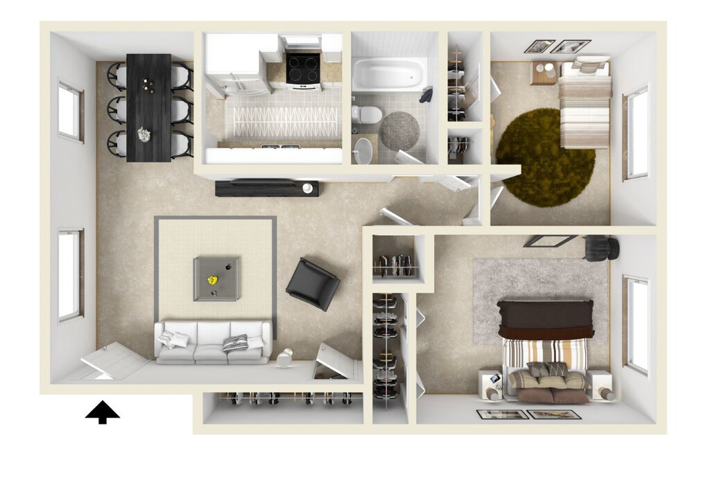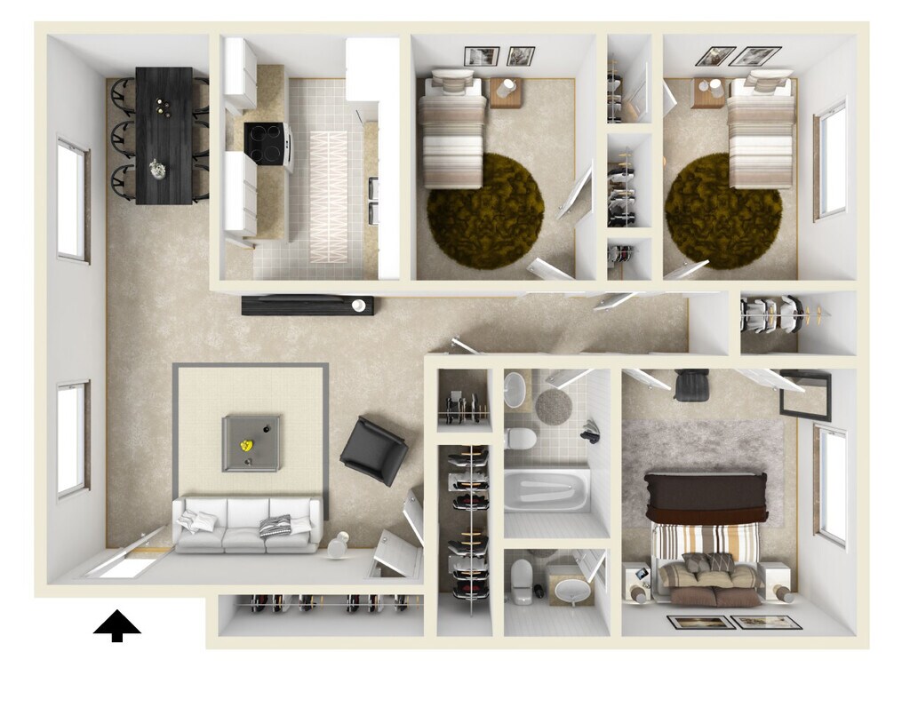 2 Beds, 1 Bath, 756 sq ftAvailable NowCheapest 2 BedroomThis is the cheapest 2 Bedroom at this PropertyModel Gallery