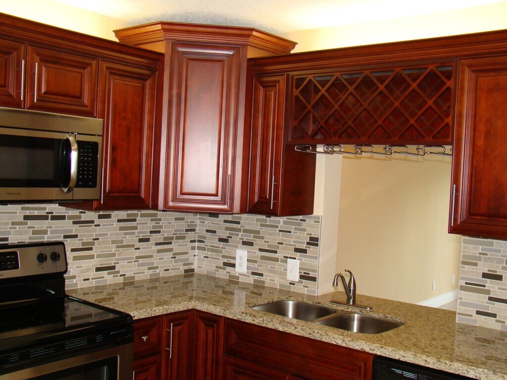 - Wood Panel Cabinets with Granite Countertops