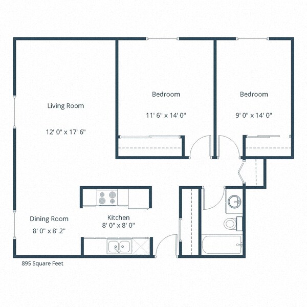 Two Bedroom 21A - Floorplan 1 Apartment Unit: 1-4Apartment Model: Two Bedroom 21A2 Bedroom, 1 Bath, 895 sq ftAvailable NowApartment Unit: 1-8Apartment Model: Two Bedroom 21A2 Bedroom, 1 Bath, 944 sq ftAvailable NowTwo Bedroom 21B